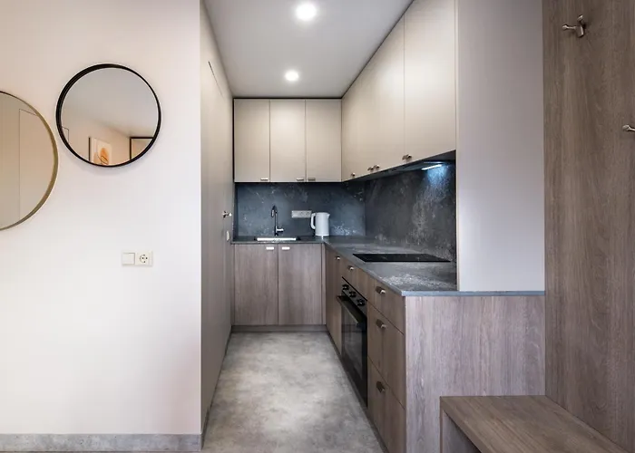 Quest'aparthotel si trova a circa 40 km dall'aeroporto Internazionale di Palanga e vicino a diversi luoghi di interesse culturale, come il Castello di Klaipėda. Gli ospiti possono visitare Ännchen von Tharau Denkmal a una distanza di 1 km dal Berlin Studios Klaipėda. C'è il Museo del Mare a 10 minuti in auto. Questo hotel è situato in prossimità della fermata dell'autobus Nemuno st.
